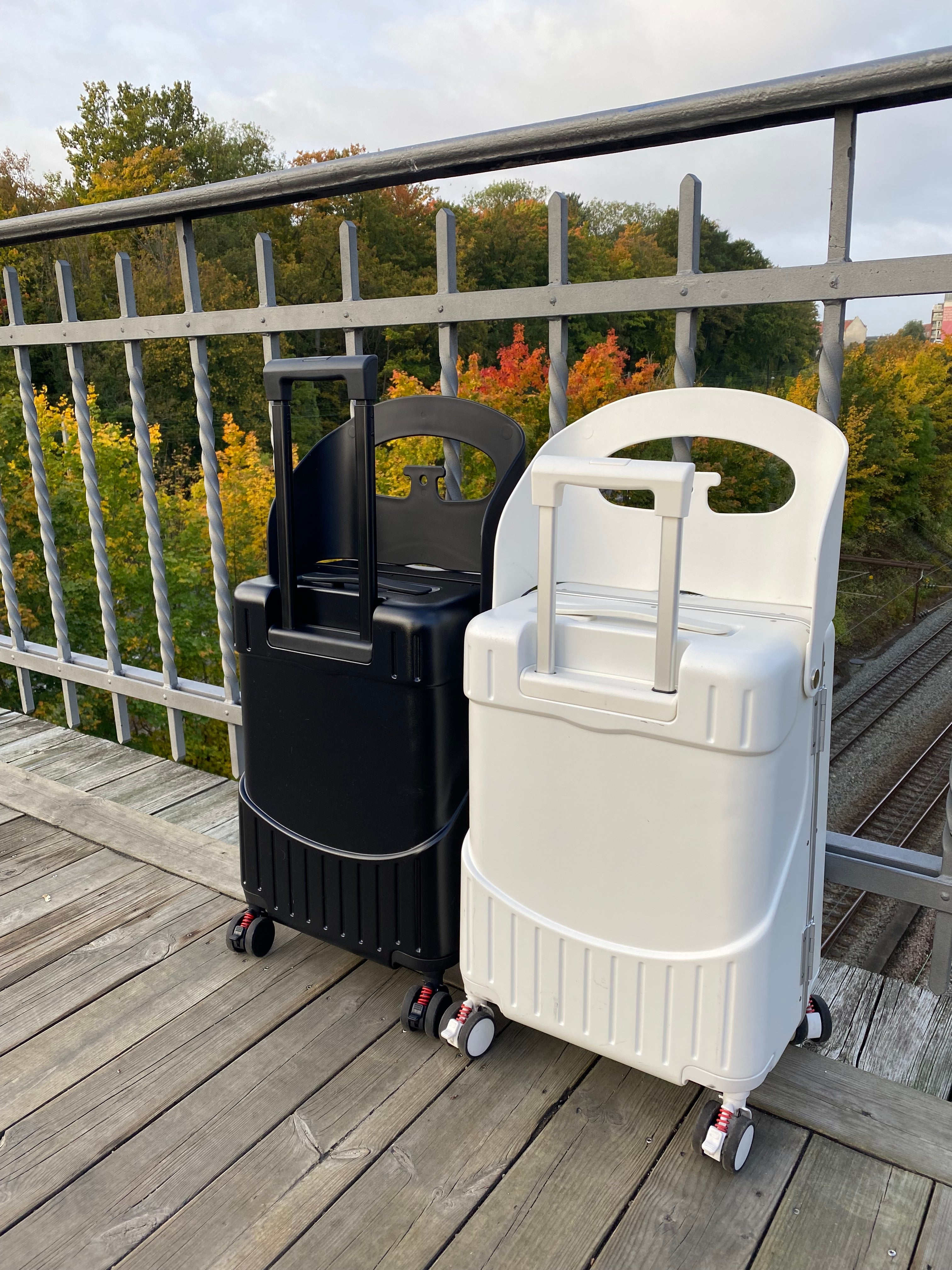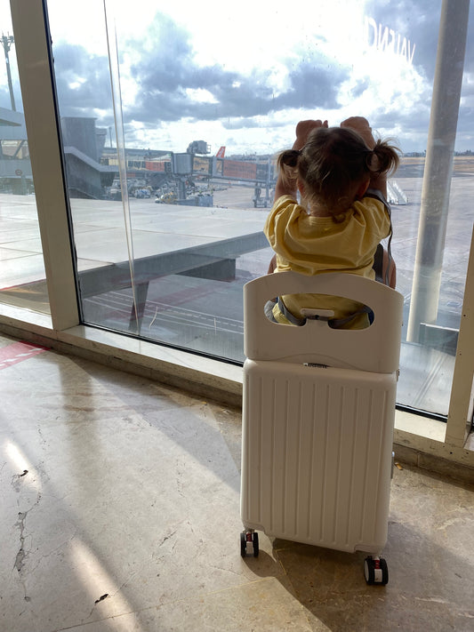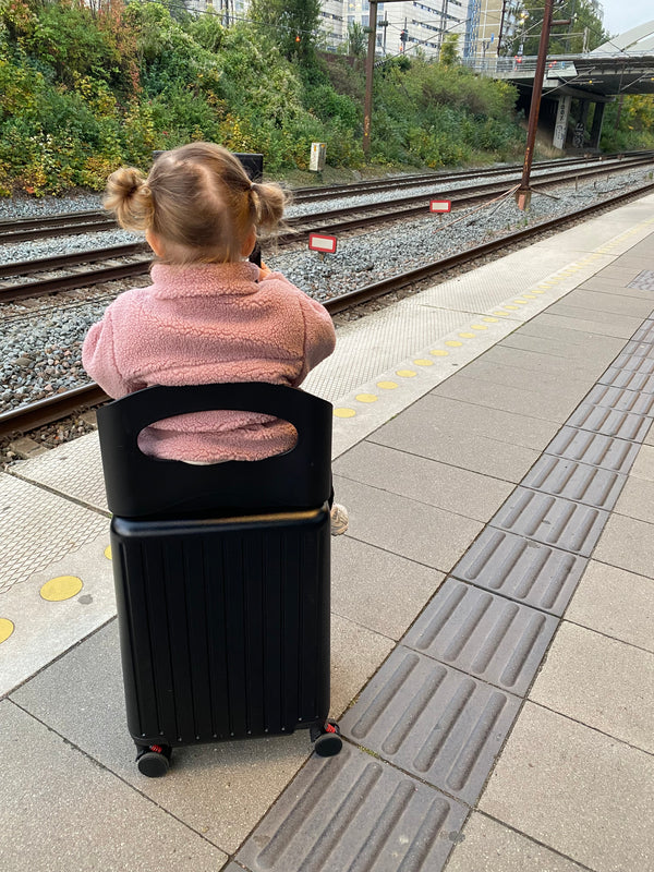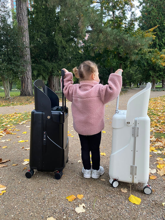 Our innovative & stylish carry-on, offers a smart built-in seat that converts into a ride-on for children, a seat for adults, and a safe place for your bag, making travel more convenient for the modern traveler.